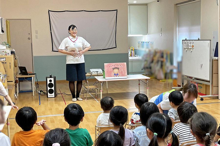 2025年7月、クレアナーサリー新百合ヶ丘保育園(川崎市麻生区)にて、幼児向けおなか元気教室を開催しました。