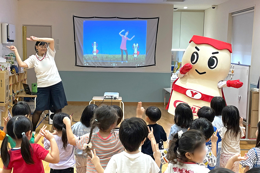 紙芝居のあとは、子どもたちが楽しみにしていたヤクルトマンが登場!